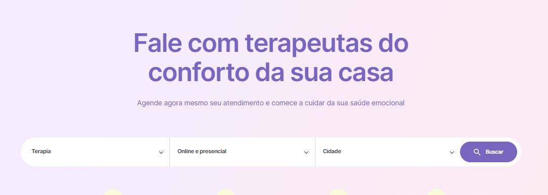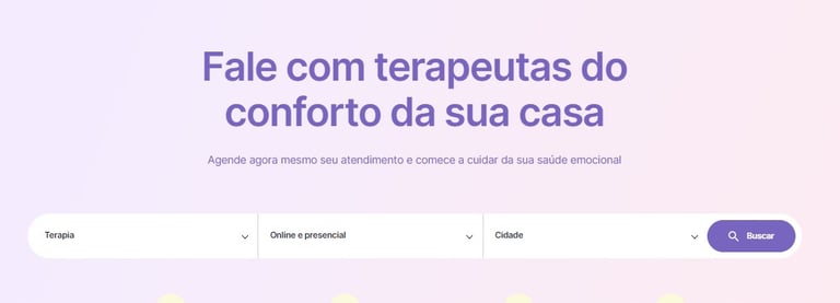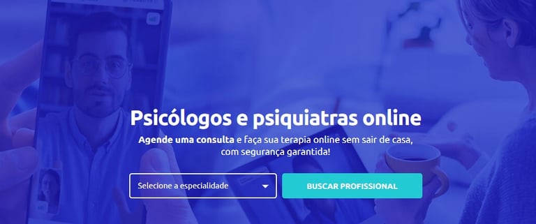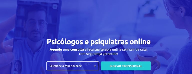 A plataforma é voltada para psicólogos. O foco é o atendimento online, mas se o cliente quiser, há redirecionamento da busca para sites com escritórios presenciais.
