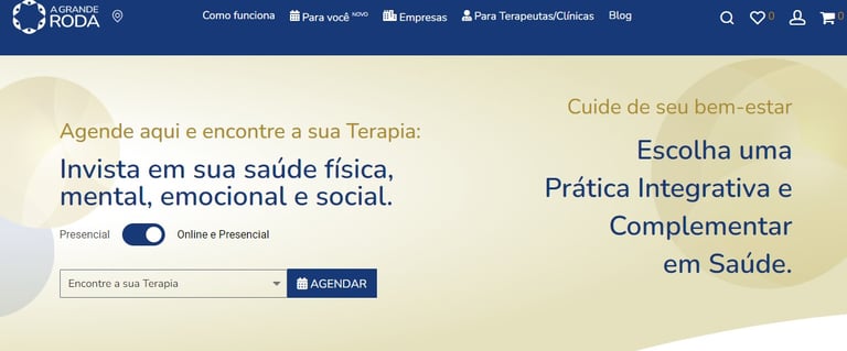 A plataforma oferece uma diversidade de Práticas Integrativas e Complementares em Saúde (PICS). A Grande Roda é feita para pessoas físicas e empresas, além de ter parcerias com clínicas. Os atendimentos são nos formatos presencial e online.
